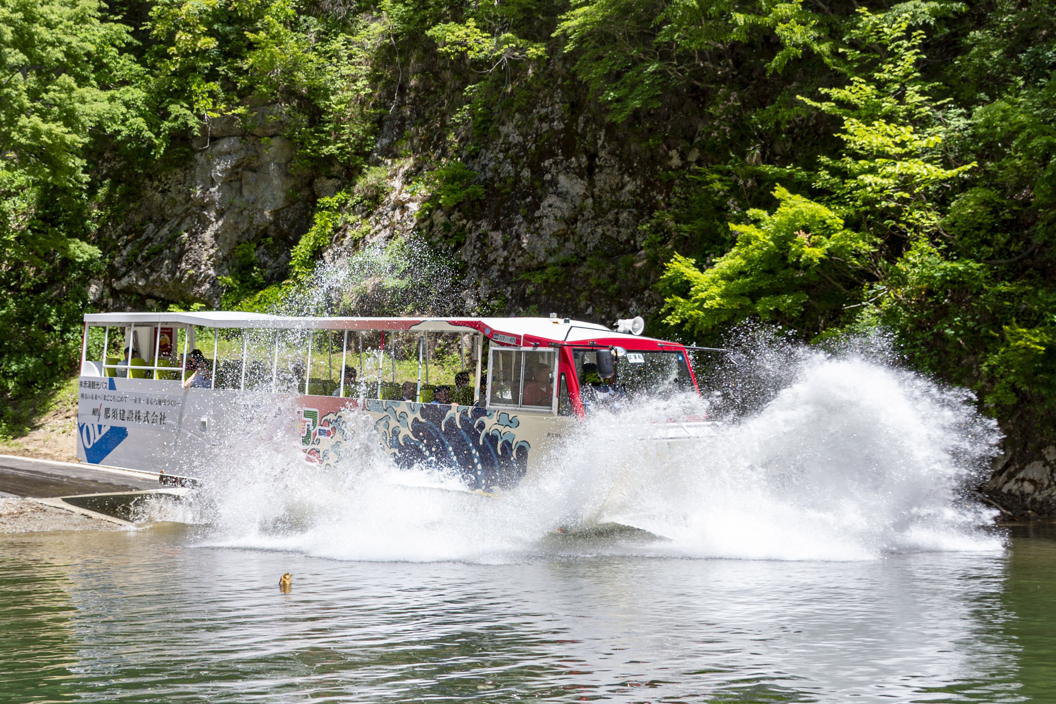 令和6年7月8日長井ダム湖の水位低下の状況により安全な運行ができないため、7月12日(金)まで水陸両用バスinながい百秋湖を運休させていただいておりましたが、安全な運行ができないため、令和7年は全面運行中止とさせていただくことになりました。
