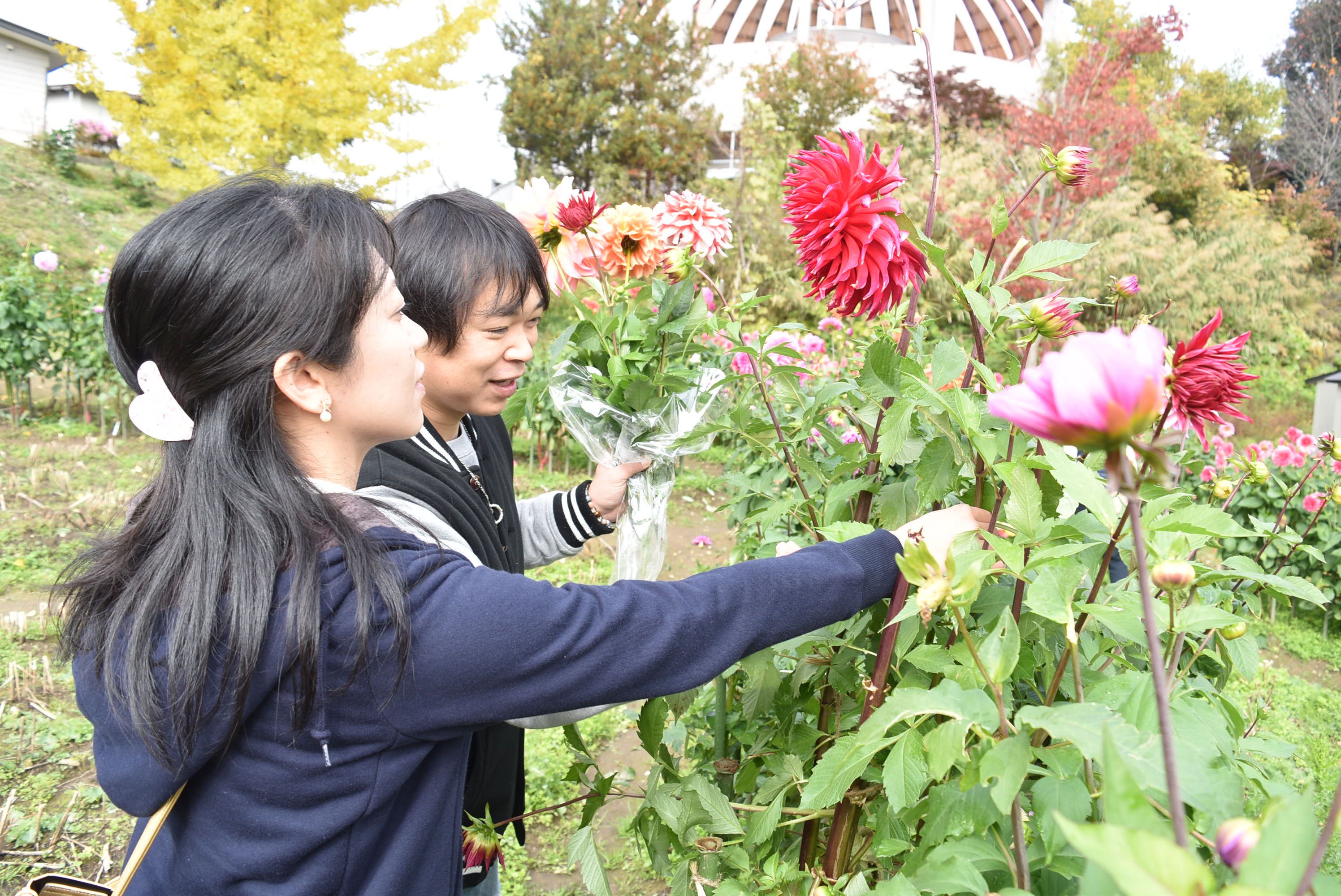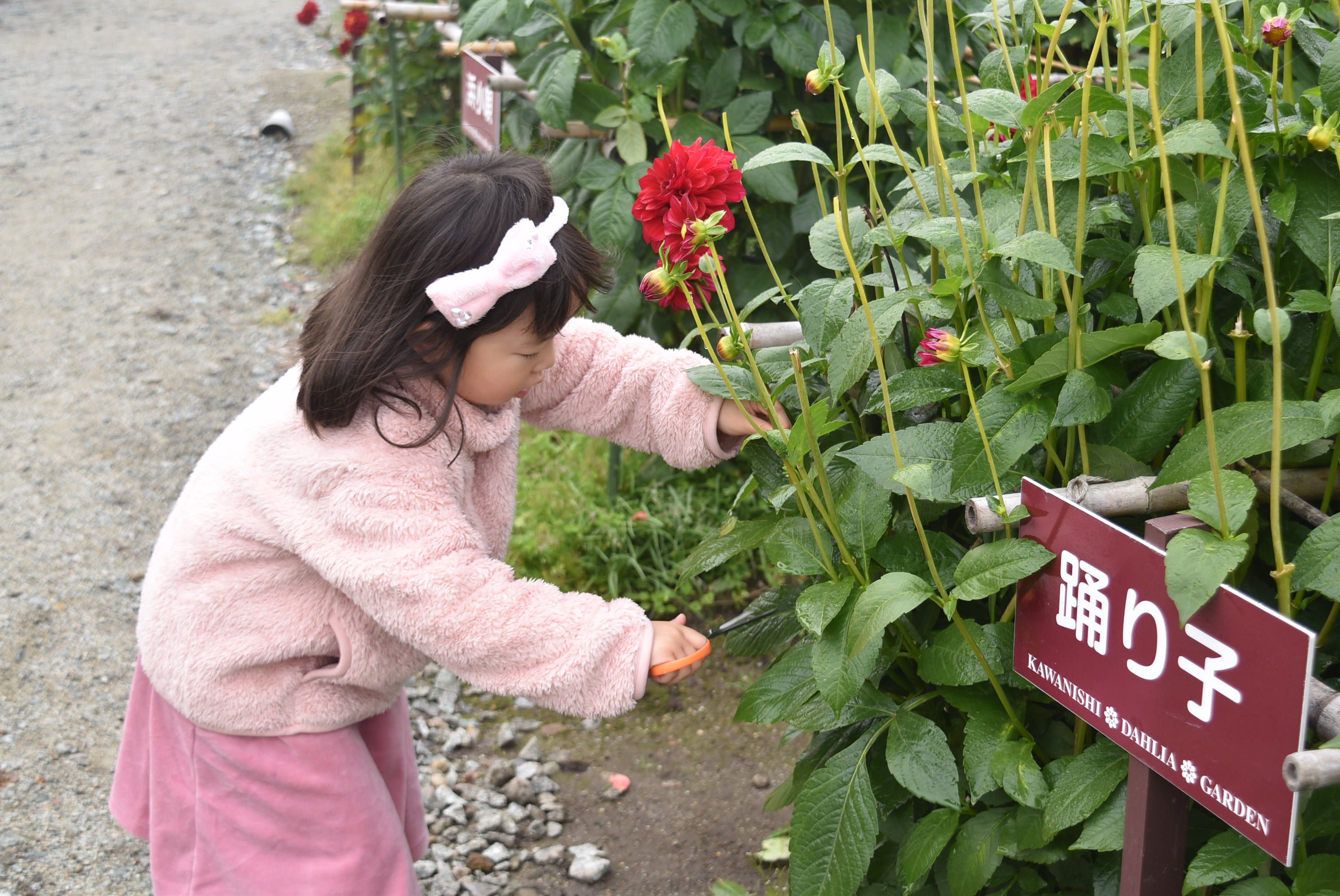 川西ダリヤ園の開園最終日に行われる毎年恒例のイベント。園内に咲くお好きなダリアを収穫して持ち帰ることができます。一般には流通していないダリアが多いので、ぜひお気に入りの花を見つけてください。