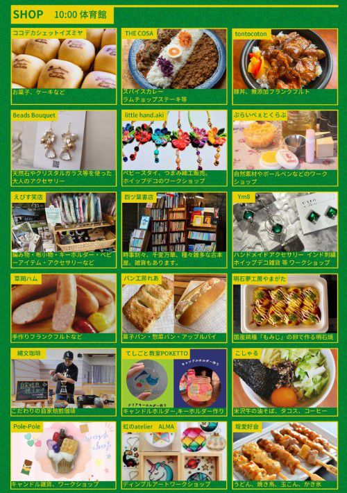 他にもフリマ・ボードゲーム・ワークショップなどの体験、そして美味しいものもたくさん!(^^)! “みんな”で楽しみましょう!